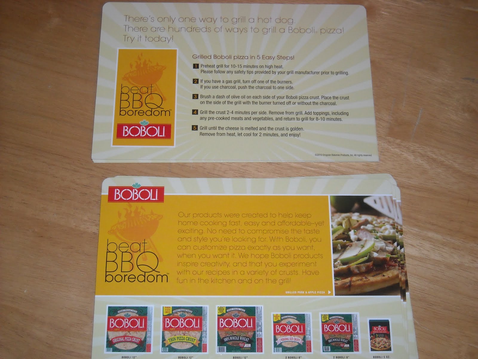 so what happens next is my party supplies are sent to me and i start my planning. this party is sponsored by Boboli Pizza Crust and they want all the pizzas to be grilled on the bbq. they send coupons to purchase the crust, suggested recipes (not mandatory) and other "goodies" for my guest. kind of like a mini swag bag :) and i got my box today!